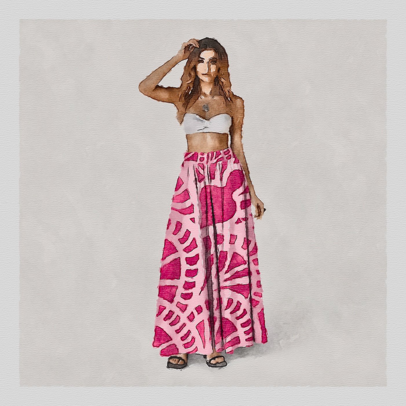 Series II serves as a profound expansion of our studio’s exploration into the life of a print. In this collection, the watercolor origins are not merely applied to fabric; they are integrated into the very movement of the silhouette. This series celebrates the transition from the static canvas to the living body, ensuring that every garment carries the weight, depth, and intentionality of the original fine art. We continue to prioritize the autonomy of the design process, allowing the textile to dictate the drape and the art to define the lifestyle.